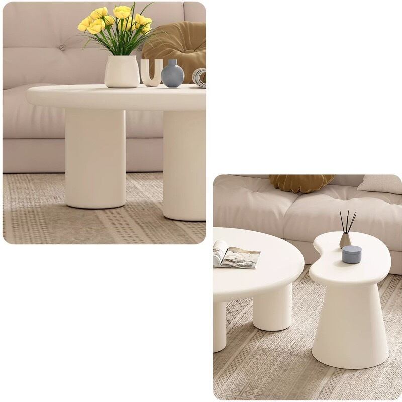 流れるような曲線が目を引く、くすみホワイトのサイドテーブルです。