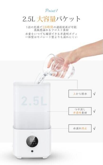 ・2.5Lタンクで【最大18時間】加湿できる大容量タイプ