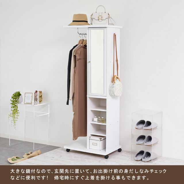 収納力だけじゃない!全身鏡付きで、お出かけ前の身だしなみチェックもバッチリ◎