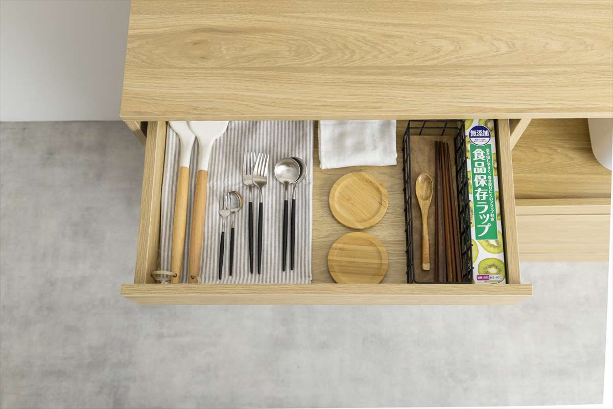 ナチュラルモダンなデザインで、生活感を抑えたキッチン空間が叶います♪