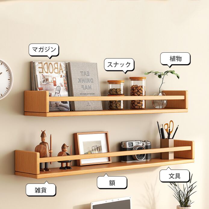【壁面をおしゃれに演出】天然木風 ウォールシェルフ