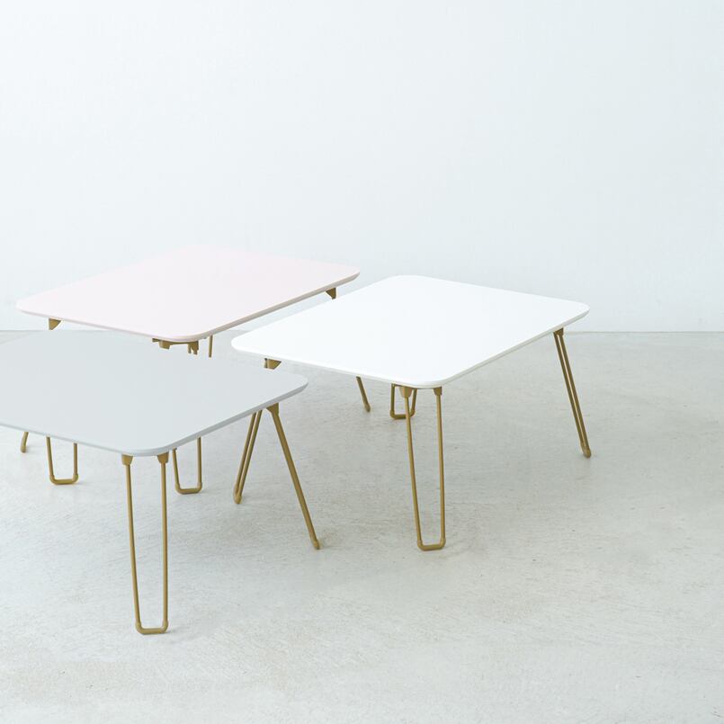 天板は美しく光を反射する鏡面仕上げ。耐久性があり汚れも目立ちにくく、お手入れ簡単。急な来客時にもさっと使えて便利なコンパクトサイズで、折りたたむとスリムに収納できます。